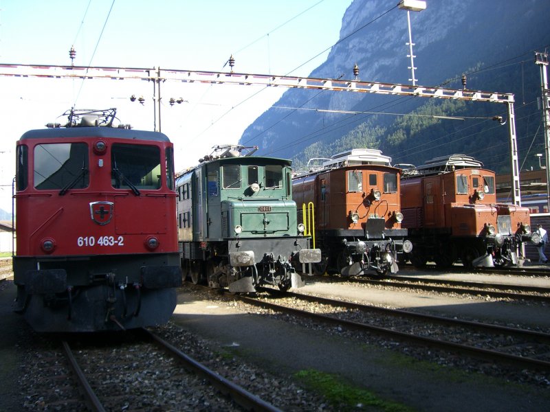 In Erstfeld sind Ae 610 463, Ae 4/7 10905, Be 4/6 12302 und Ce 6/8 14201 aufgestellt. Erstfeld, 08.09.2007
