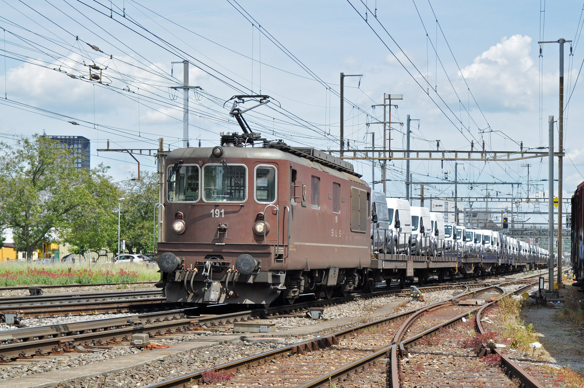 Re 425 191 der BLS durchfährt den Bahnhof Pratteln.