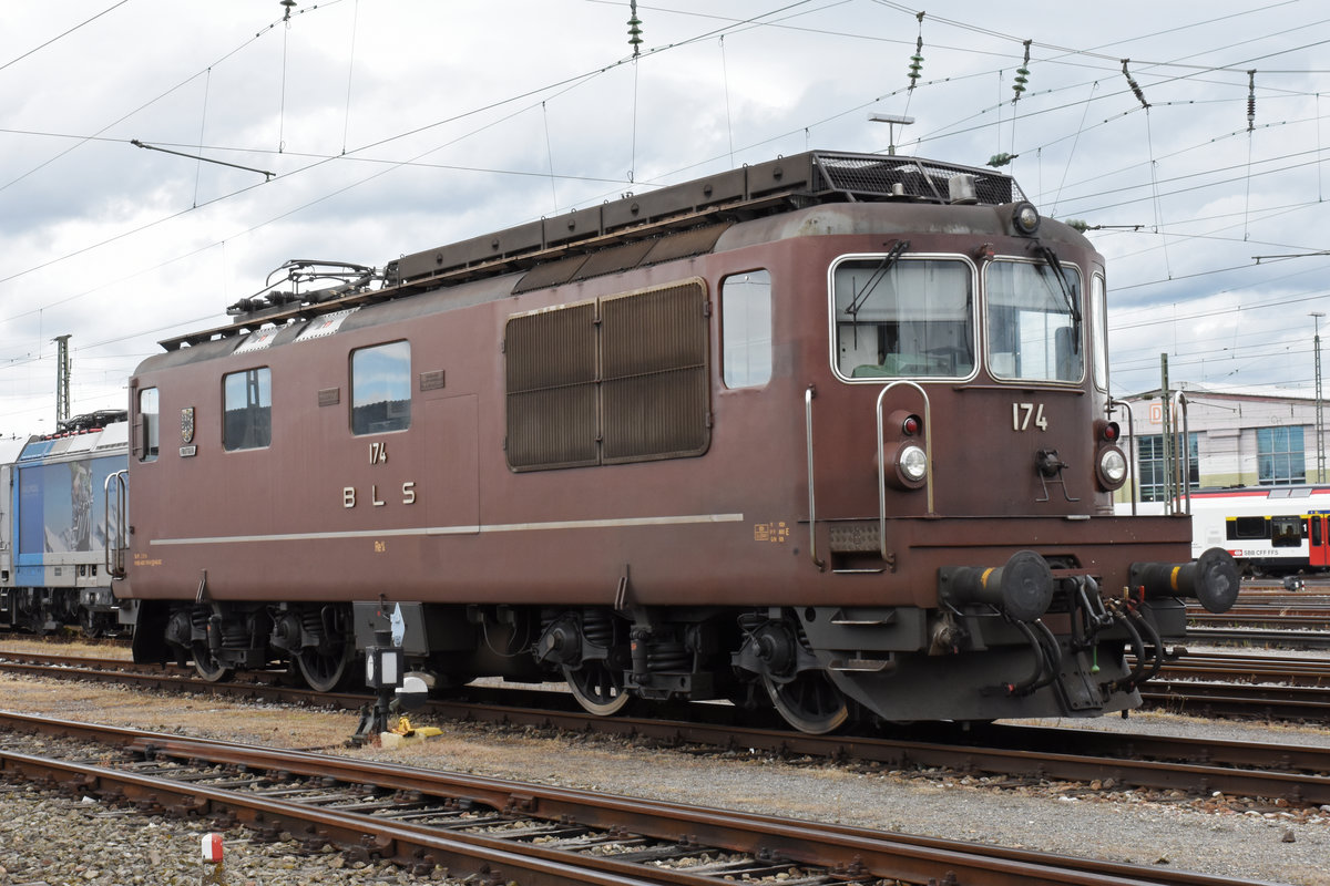 Re 425 174 der BLS steht in der Abstellanlage beim badischen Bahnhof. Die Aufnahme stammt vom 11.05.2019.