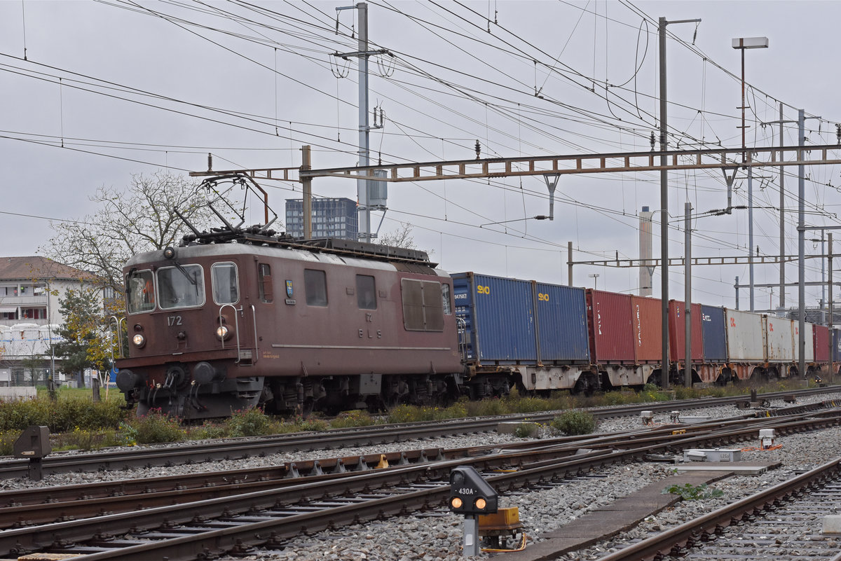 Re 425 172 der BLS durchfährt den Bahnhof Pratteln. Die Aufnahme stammt vom 04.11.2020.
