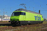 Re 425 170 der BLS steht am 08.03.2023 auf einem Abstellgleis beim badischen Bahnhof.