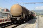 Am 1 Jänner 2024 wartet der leider schmützig gewordener BLS 179 in Brig auf neue Aufgaben und wird vom Bahnsteig fotografiert.