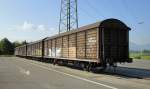 Die BLS Re 4/4 163  Grenchen  durchfährt am 14.07.11 mit einem leeren Autozug den Bahnhof Romont.