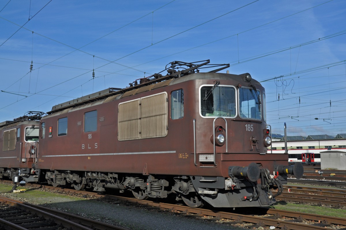 Re 425 185 der BLS ist am Badischen Bahnhof abgestellt.