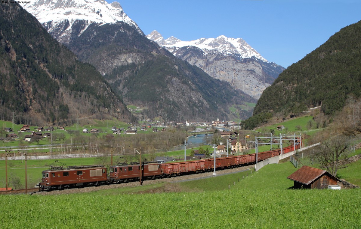 BLS 180 und BLS 167 mit einem Stahlzug bei Silenen 9.4.15