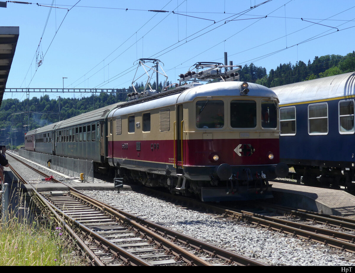 TEE - Re 4/4 10034 mit einem Extrazug im Bahnhof von Sumiswald - Grünen am 11.06.2022
