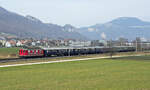 Montag den 22.12.2025 um 11:35 Uhr in Olten (SO). Im Rangierbahnhof Olten auf Gleis G9 steht der von Sissach eingetroffene 32133 welcher als Güterzug über Läufelfingen bis Olten RB verkehrte. In Olten werden die drei hintersten Wagen abgehängt. Ab Olten geht es mit der blauen Re 4/4I 10009 (UIC-Nr. 91 85 4410 009-5 CH-CLRA) sowie mit den drei angehängten Fahrzeugen Ee 3/3 16326 (UIC-Nr. 97 85 1930 326-4 CH-CLRA), Ee 3/3 16313 (UIC-Nr. 97 85 1930 313-2 CH-CLRA) und der Re 4/4I 10016 (UIC-Nr. 91 85 4410 016-0 CH-CLRA / vormals Re 416 627-8 der Mittelthurgaubahn MThB / Ursprungsnummer 416 später 10016) weiter als Lokzug 39980L über Biel/Bienne nach Lyss. Höchstgeschwindigkeit 40 km/h. Die Lok 91 85 4410 016-0 CH-CLRA hatte vom 19.09.1955 bis 14.12.1957 einen hellgrüner Versuchsanstrich. Lokführer gab die Einwilligung für die Veröffentlichung seiner Person auf dem Bild. Name des Lokführers ist mir bekannt (R.S.). Betreten der Gleisanlage war für den Fotografen erlaubt da er an der Überführungsfahrt beteiligt war. Der vordere Stromabnehmer ist oben weil sich hinter der Lok Fahrzeuge mit Fensterscheiben befinden (Schleifleistenabrieb könnte sich bei den Fenstern einbrennen). Gleisbegehung war für mich genemigt da ich an der Ueberführung mitbeteiligt war. Koordinaten GMS (Grad, Minuten, Sekunden): N 47° 21’ 22.8’’ O 7° 54’ 33.0’’