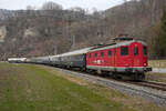 Samstag den 03.01.2026 um 12:05 Uhr in Oensingen (SO). Rückleitung des Rollmaterials von der Silvesterfahrt (29.12.2025 – 02.01.2026 / Bern – Leipzig - Bern) von Lyss nach Oensingen (2 Wagen am Zugschluss) und von Lyss nach Winterthur (4 Wagen hinter der Lok). Hier auf dem Bild sind die zwei Wagen welche nur bis Oensingen verkehren bereits abgehängt. Als Lokomotive dieses Leermaterialzuges von Lyss bis Winterthur dient die Re 4/4 I 10039 (UIC-Nr. 91 85 4410 039-2 CH-CLRA). Ihre Ursprungsnummer bei der Ablieferung war 439. Die Zugnummer von Lyss bis Oensingen lautet 32241. Ab Oensingen bis Winterthur lautet die Zugnummer 32243. Fahrplan gemäss Anzeige: Lyss ab 11:02 Oensingen an 11:42 ab 14:20 Winterthur an 15:43. Wirkliche Fahrzeiten: Lyss ab 10:59 Oensingen an 11:42 ab 12:28 Winterthur an 14:14. Betreten der Gleisanlage war für den Fotografen erlaubt da er an der Rückleitung beteiligt war. Koordinaten GMS (Grad, Minuten, Sekunden): N 47° 17’ 8.3’’ O 7° 42’ 40.5’’