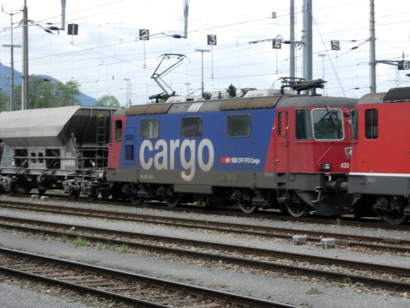 Eine Re 420 der SBB steht mit einem Güterzug in Buchs/SG abfahrtbereit in Richtung Sevelen am 14.05.07