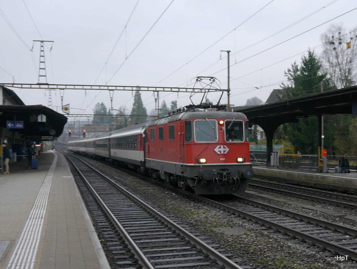SBB - Re 4/4 11141 mit IC bei der durchfahrt im Bahnhof Liestal am 23.12.02017