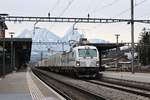 Im Bild erreicht der Sonderzug den Bahnhof Arth-Goldau, wo hier die ECTS 2-taugliche Lok den Zug verlässt und die Re 4/4 I 10009 hinzukommt.