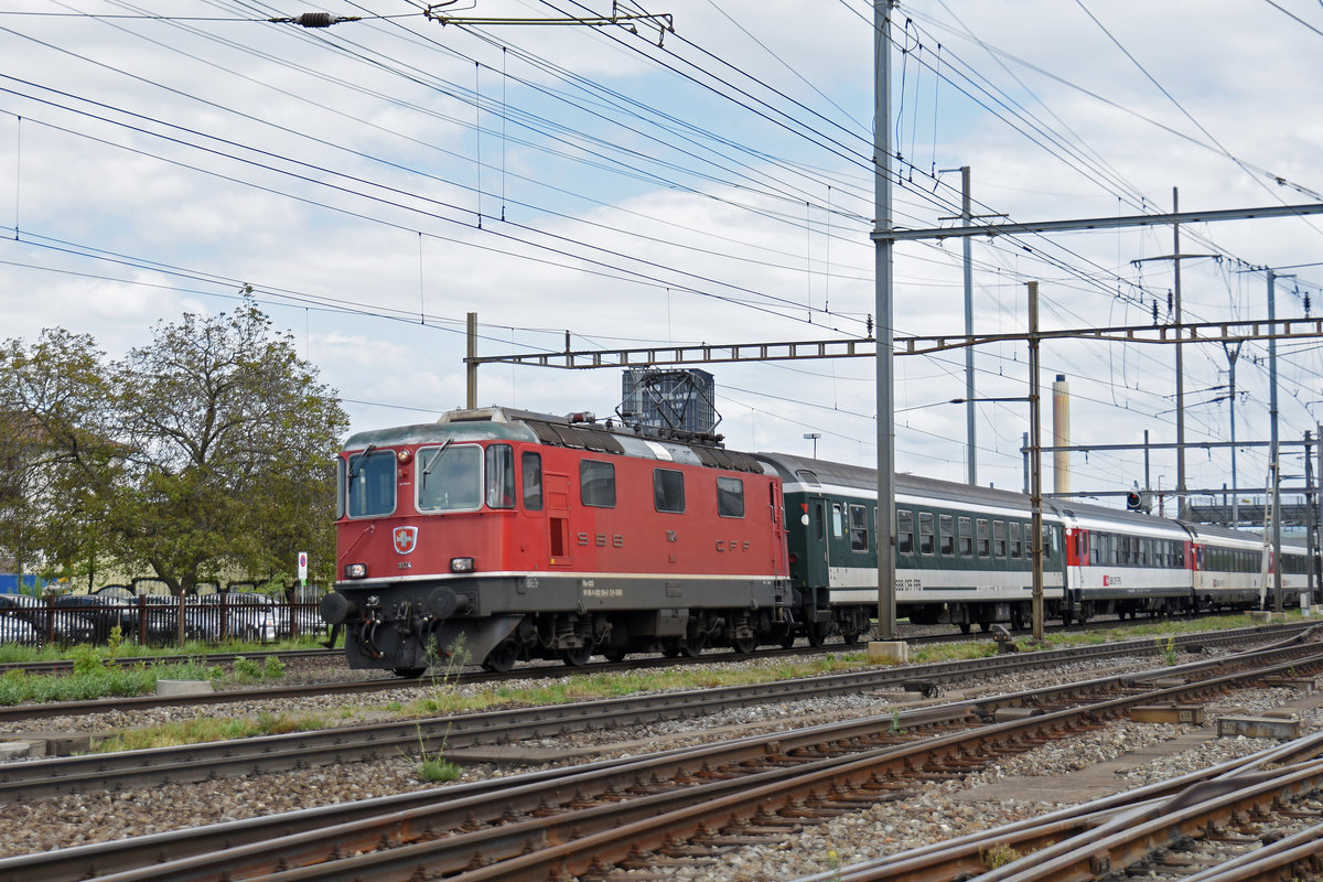 Re 4/4 II 11124 durchfährt den Bahnhof Pratteln. Die Aufnahme stammt vom 23.05.2018.