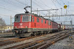 Die SBB Re 4/4 II 11197 ist mit einen "Disopzug" nach Brig unterwegs und konnte beim Halt in Vevey fotografiert werden. 26. Januar 2020