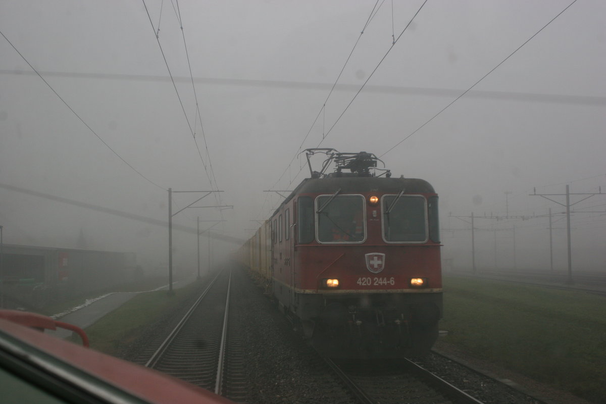 Der Postzug mit der Re 420 244 als Zuglok hat das Verteilzentrum Härkingen gerade verlassen und kreuzte unseren Weg kurz danach.