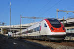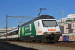 Re 4/4 II 11145 fährt Richtung Bahnhof Muttenz. Die Aufnahme stammt vom 21.02.2019.