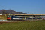 Messzug, mit der Re 4/4 II 11109, dem X 60 85 99-90 108-9 und dem BDt 50 85 82-33 986-9 fährt Richtung Bahnhof Itingen. Die Aufnahme stammt vom 18.03.2019.