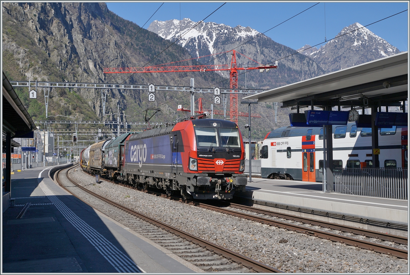 Die SBB Re 420 251-1 mit ihrem Postzug auf der Fahrt Richtung Lausanne konnte gerade noch ohne Gegenlicht bei der Rhone Brücke zwischen St-Maurice und Bex abgelichtet werde.
