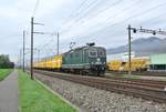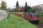 Die Re 4/4 11193 die den RABe 502 404  Brig-Glis  nach einem Ranigerunfall nach Zollikofen gezogen hat, 19.2.26 in Zollikofen.