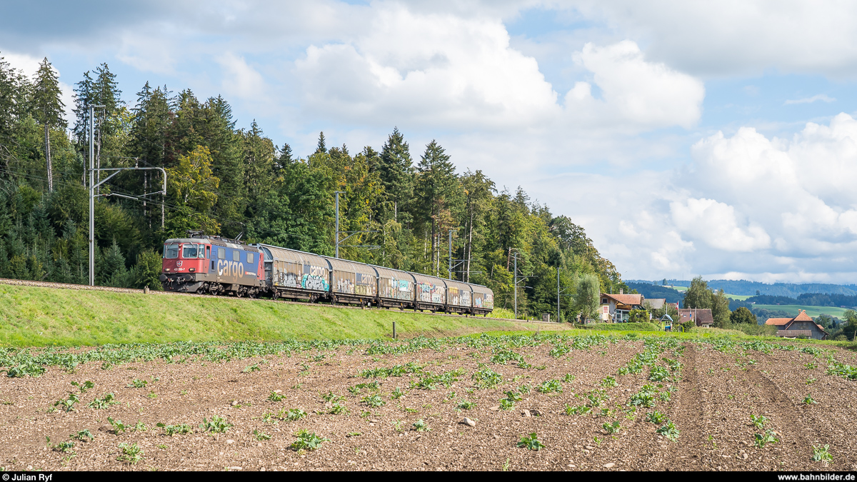 SBB Cargo Re 4/4 II 11253 mit Extragüterzug Emmenmatt - Biel RB am 1. September 2020 bei Vielbringen.