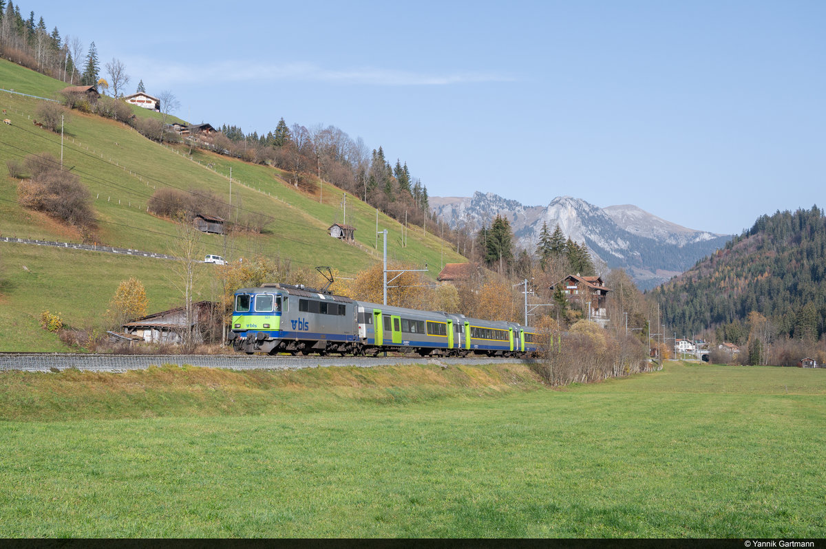 BLS Re 420 501 ist mit ihrem Golden Pass Line EW III Pendel unterwegs als RE 4065 von Interlaken Ost nach Zweisimmen und konnte hier am 07.11.2020 bei Grubenwald von mir aufgenommen werden.