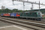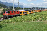 Die grüne Re 4/4 II 11335 mit einer Sonderleistung auf der Fahrt nach Rotkreuz bei Deitingen am 7. September 2021.