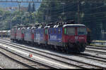 Oberbuchsiten - 2. September 2021 : Re 420 243 mit Swisspass" Werbung mit einem Postzug unterwegs nach Olten.