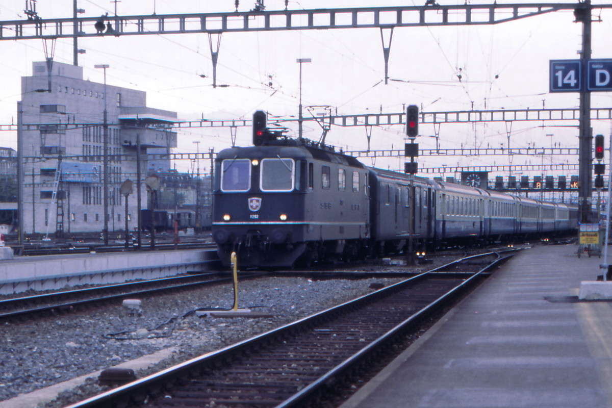 Re 4/4 II 11144 ist mit dem NJ aus Amsterdam (resp. was in der CH davon noch übrig ist) unterwegs nach Zürich HB. Aufgenommen zwischen Hornussen und Effingen AG am Morgen des 28.05.2022.