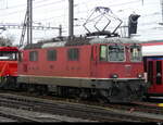 Die Re 4/4 11193 die den RABe 502 404 "Brig-Glis" nach einem Ranigerunfall nach Zollikofen gezogen hat, 19.2.26 in Zollikofen.