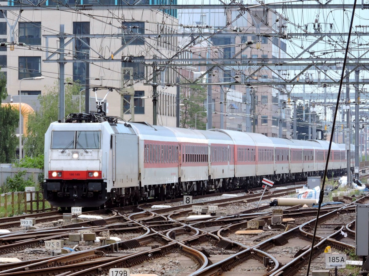 Die SBB Re 4/4 II dürfte dank dem SWISS EXPRESS Anstrich welche die Lok sehr lange Zeit zierte zu den am meisten fotografieren Re 4/4 II gehören Hier noch ein weiters Bild: Durch den Neubau bzw. Einfügen der Murgbrücke über die Ostertage wurde der CNL 1258 von Berlin Lichtenberg nach Zürich HB über die Gäubahn umgeleitet.