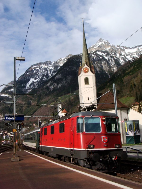 Re 4/4 II 11157 mit IR nach Locarno bei der Einfahrt in Flüelen am 26.03.2008