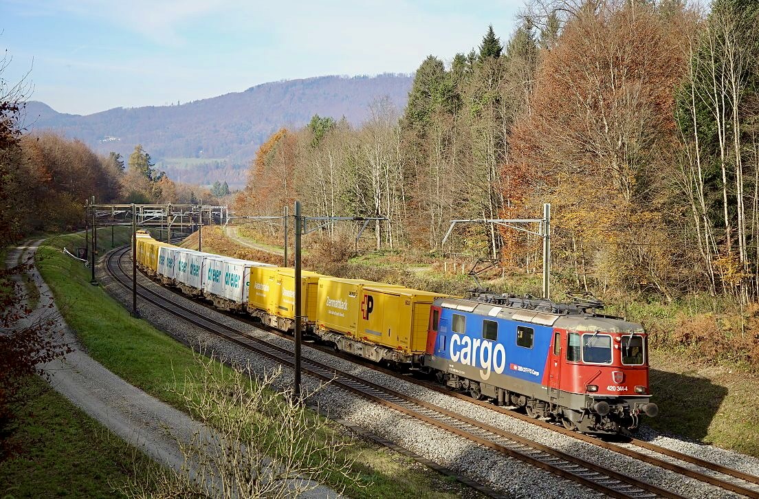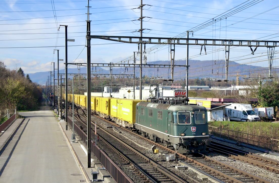 RE3832 von Chur nach St.Gallen prescht mit 140km/h durch das Churer Rheintal bei Zizers. Daher rührt auch die kleine Unschärfe bei den Wagen. (17.11.2010)