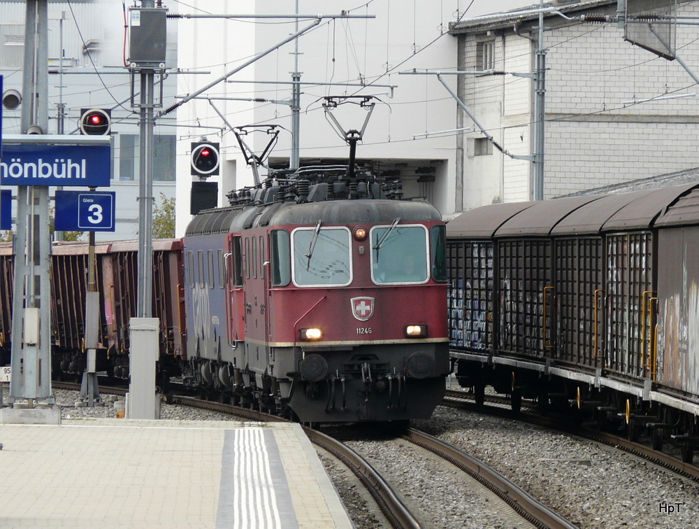 SBB - Re 4/4 11246 + Re 6/6 vor Güterzug bei der durchfahrt in Schönbühl am 22.10.2010