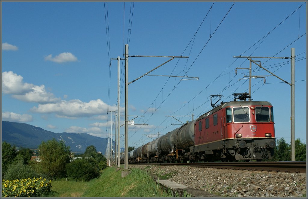 SBB RE 4/4 II 11176 mit einem Tankwagenganzzug bei Lengnau.