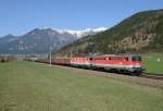 Der IR 2264 wurde heute ausnahmsweise durch 3 Re 4/4 II gezogen. An der Spitze ist die 11108, dahinter die 11135 und 11150. Die beiden hinteren Loks haben einen Extrazug ins Tessin gebracht und werden nun zurück nach Zürich überführt, Arth-Goldau, 19.04.2014.