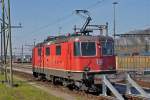 Re 4/4 II 11297 durchfährt den Güterbahnhof Muttenz.