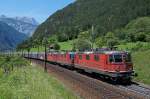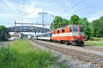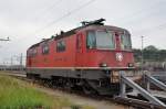 Re 4/4 II 11297 durchfährt den Güterbahnhof Muttenz. Die Aufnahme stammt vom 30.05.2014.