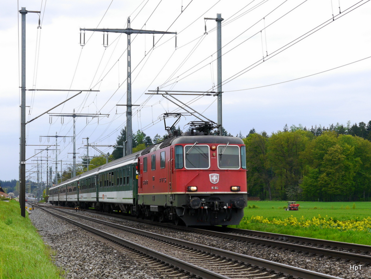 SBB - Re 4/4 11303 mit Extrazug unterwegs bei Lyssach am 30.04.2016