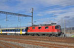 Die SBB Re 4/4 II Nr. 11156 fuhr am 15.1.17 um etwa 12.50 durch den Bahnhof Bassersdorf, im Kanton Zürich. Der SBB NPZ Triebwagen "BDt" führte die restlichen 9 NPZ EW I Waggons und die Re 4/4 II 11156 (zuhinterst) in Richtung Winterthur.