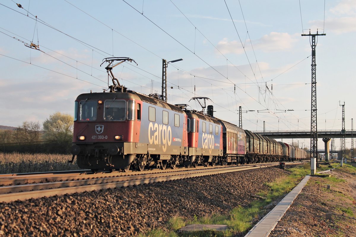 Mit dem DGS 48620 ("Sierre" - Muttenz - Göttingen Gbf) fuhren am Nachmittag des 28.03.2017 die Re 421 393-0 zusammen mit Re 421 389-8 nördlich von Müllheim (Baden) über die KBS 703