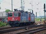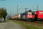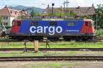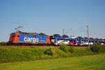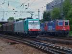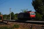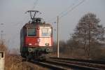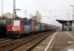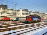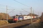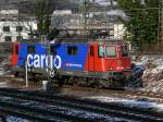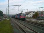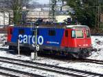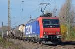 421 395-5 der SBB Cargo "Suche Mieter oder Käufer, biete auch Lokführerausbildung" bei der Durchfahrt durch Diedersdorf am 22. November 2011.