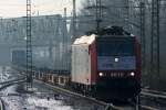 Re 421 375-7 der SBB Cargo ist am 12.01.13 mit einer unbekannten 185 im Schlepp mit einem KLV bei Karlstadt unterwegs.