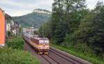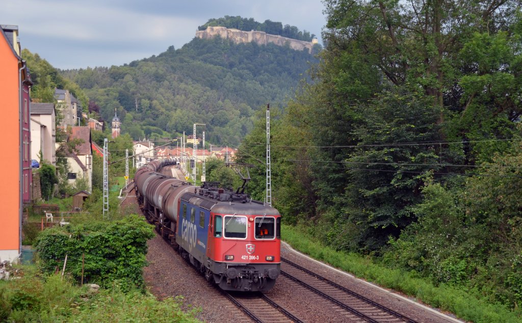 421 396 zog am 01.07.13 einen Kesselwagenzug durch Königstein Richtung Bad Schandau.