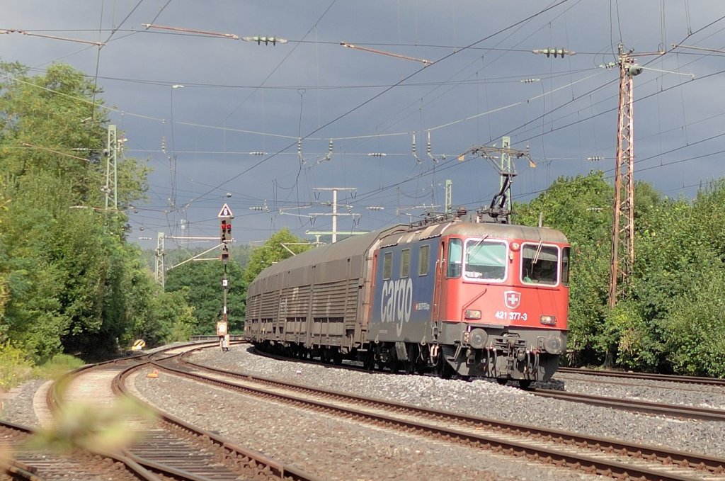 Schweizer Cargolok der Baureihe 421 zieht ihren Güterzug durch Neustadt. Aufnahmedatum 31.07.'13