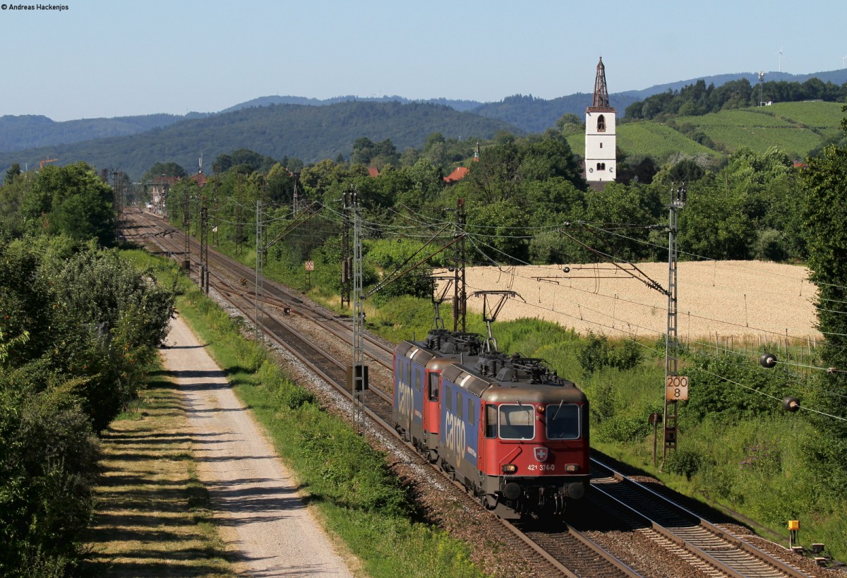 Re 421 374-0 und Re 421 388-0 als Tfzf bei Denzlingen 10.7.15