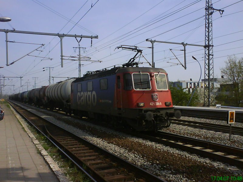 421 384 von SBB Cargo durchfährt den Bahnhof Potsdam-Golm (17.04.2007)