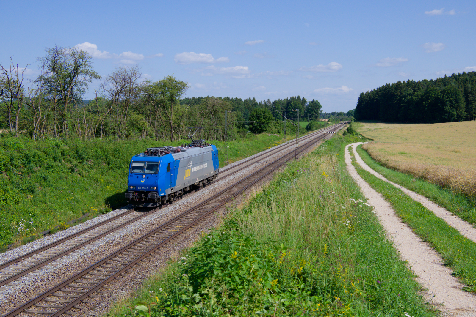 Doppeltraktion Re 430 mit Zug 69651 Birsfelden-Hafen - Visp bei Wynigen am 12. November 2020. An der Spitze des Zuges eingereiht war die Re 430 111. Die 187 002-2 befand sich abgebügelt am Schluss des Zuges.