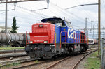 Re 4/4 III 430 350-9 (11350) und eine Re 421, durchfahren den Bahnhof Pratteln. Das abzweigende Gleis führt auf eine Strasse und in ein Industriegebiet, von wo aus auch diese Aufnahme am 20.10.2016 entstand.