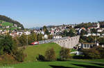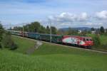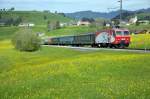 Re 446 016 mit einem VAE am 05.02.2019 bei Biberbrugg.