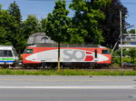 Scanbild: am 28 Mai 2002 steht SOB 446 015 mit ein Spitzverkehrszug in Einsiedeln.
