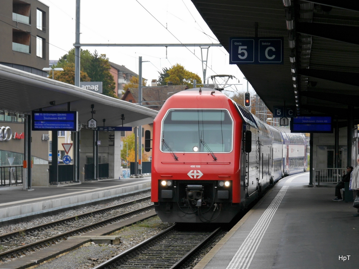 SBB - Regio nach Zürich HB bei der einfahrt im Bahnhof Schaffhausen an der Spitze die Lok 450 105 am 25.10.2016